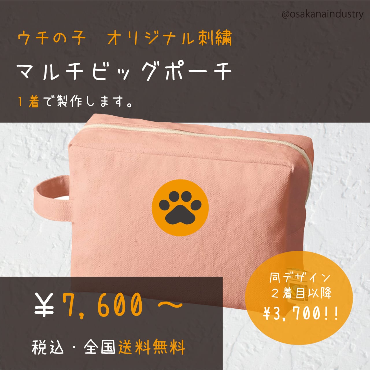 キャンバス生地のポーチにお好きなデザインを刺繍します。