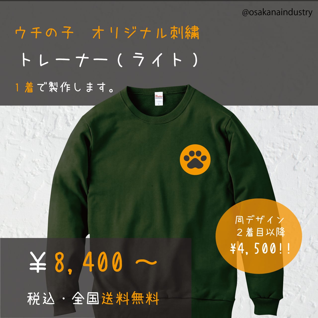 オリジナル刺繍トレーナー(ライト)製作