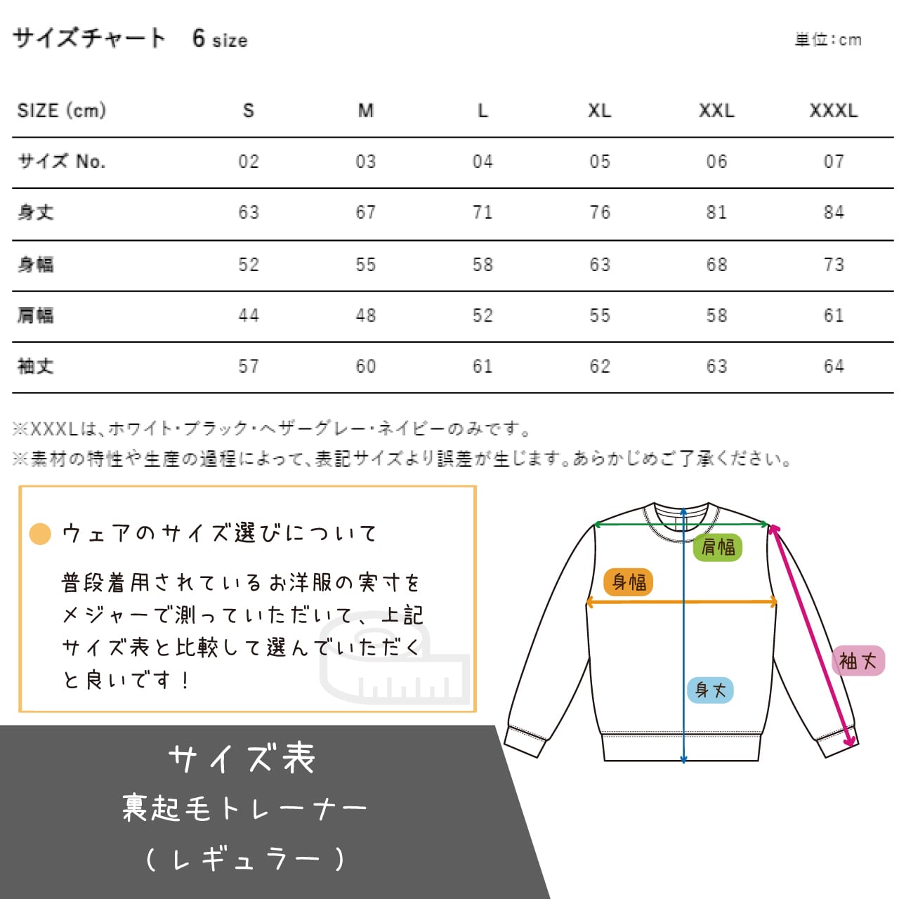 XXXLは、ホワイト、ブラック、ヘザーグレー、ネイビーのみとなります。