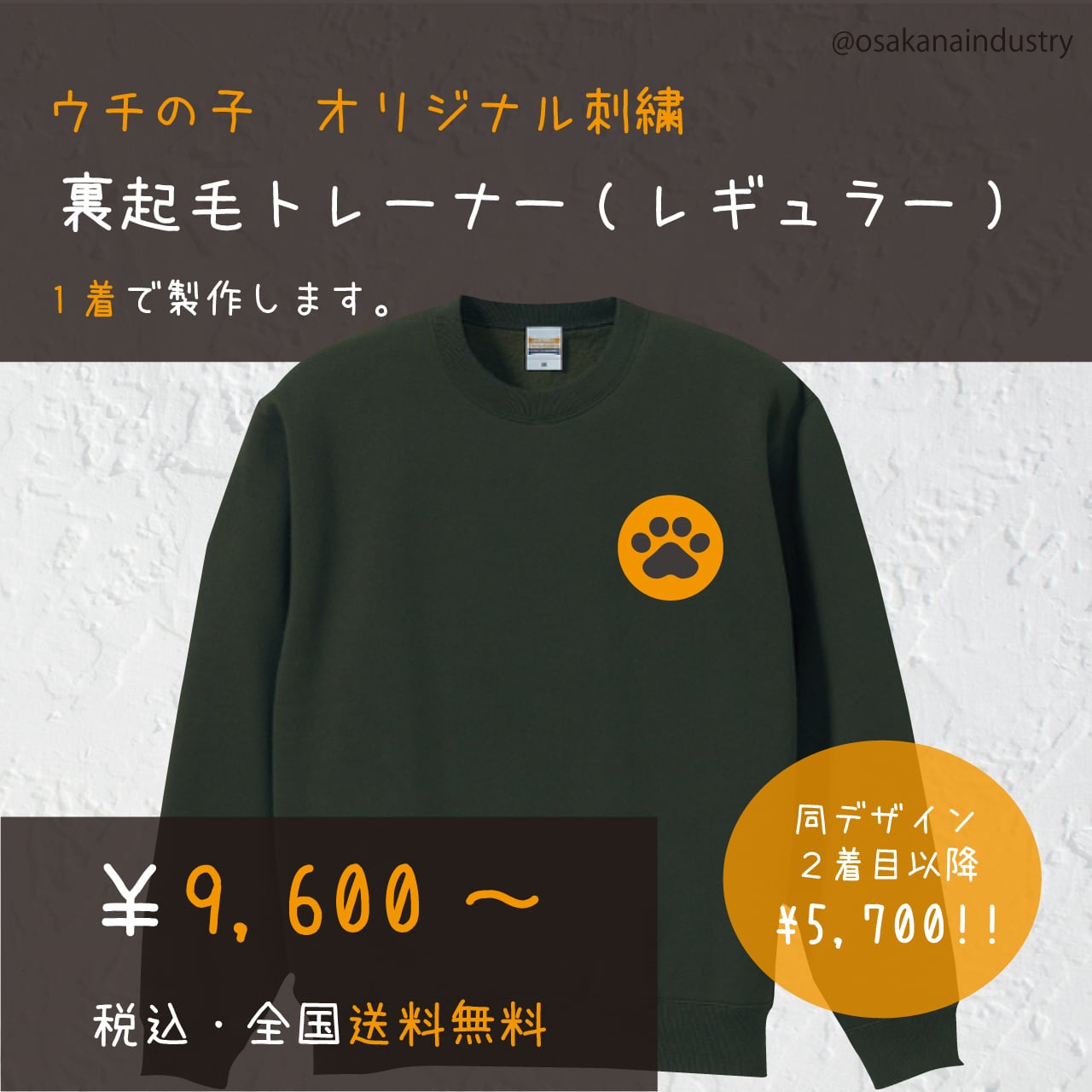オリジナル刺繍裏起毛トレーナー(レギュラー)製作