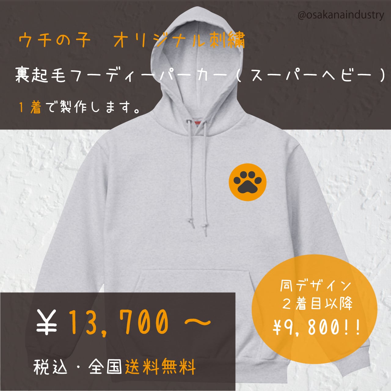 オリジナル刺繍裏起毛フーディーパーカー(スーパーヘビー)製作