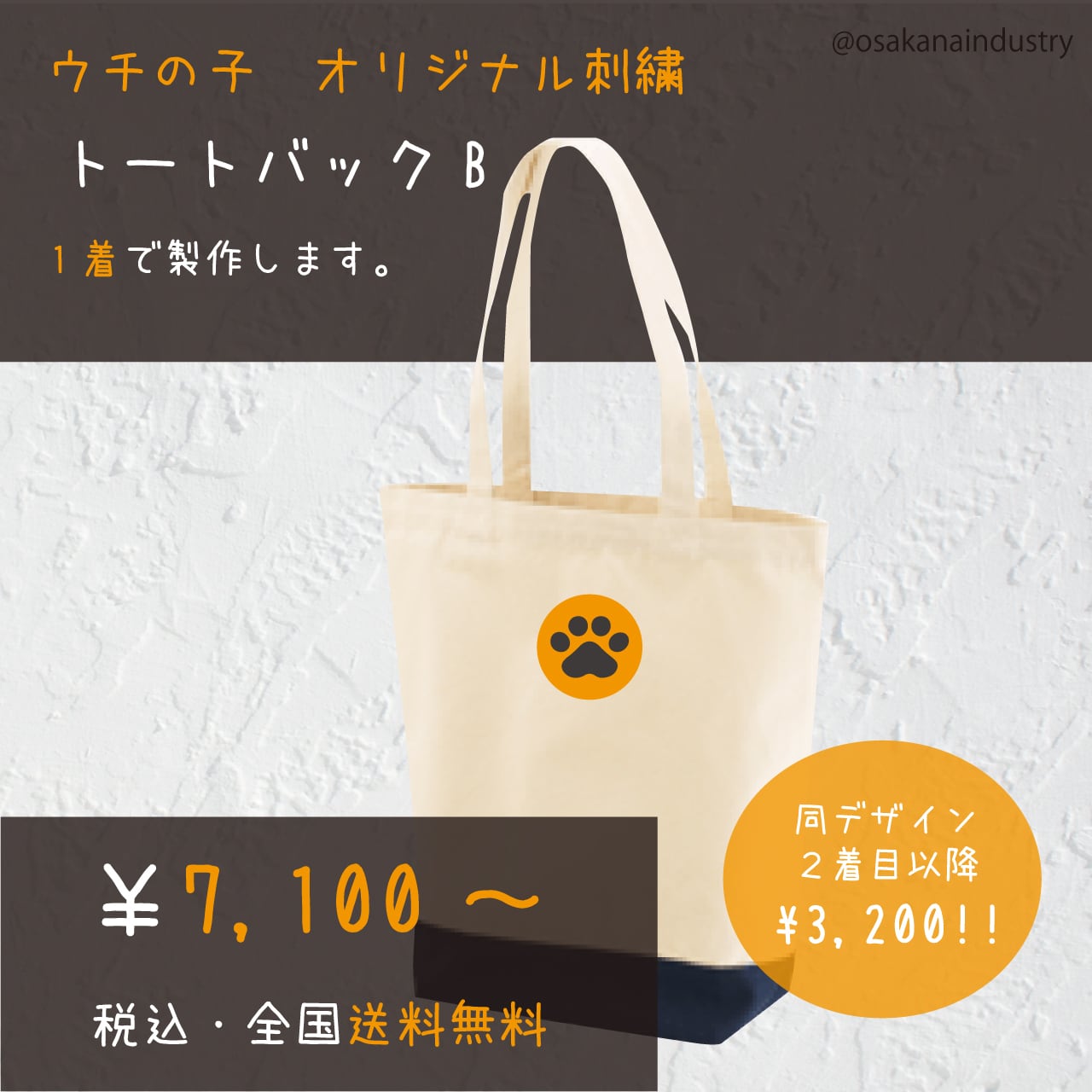※トートバックB Sサイズの最大刺しゅうサイズは10×10㎝までとなります