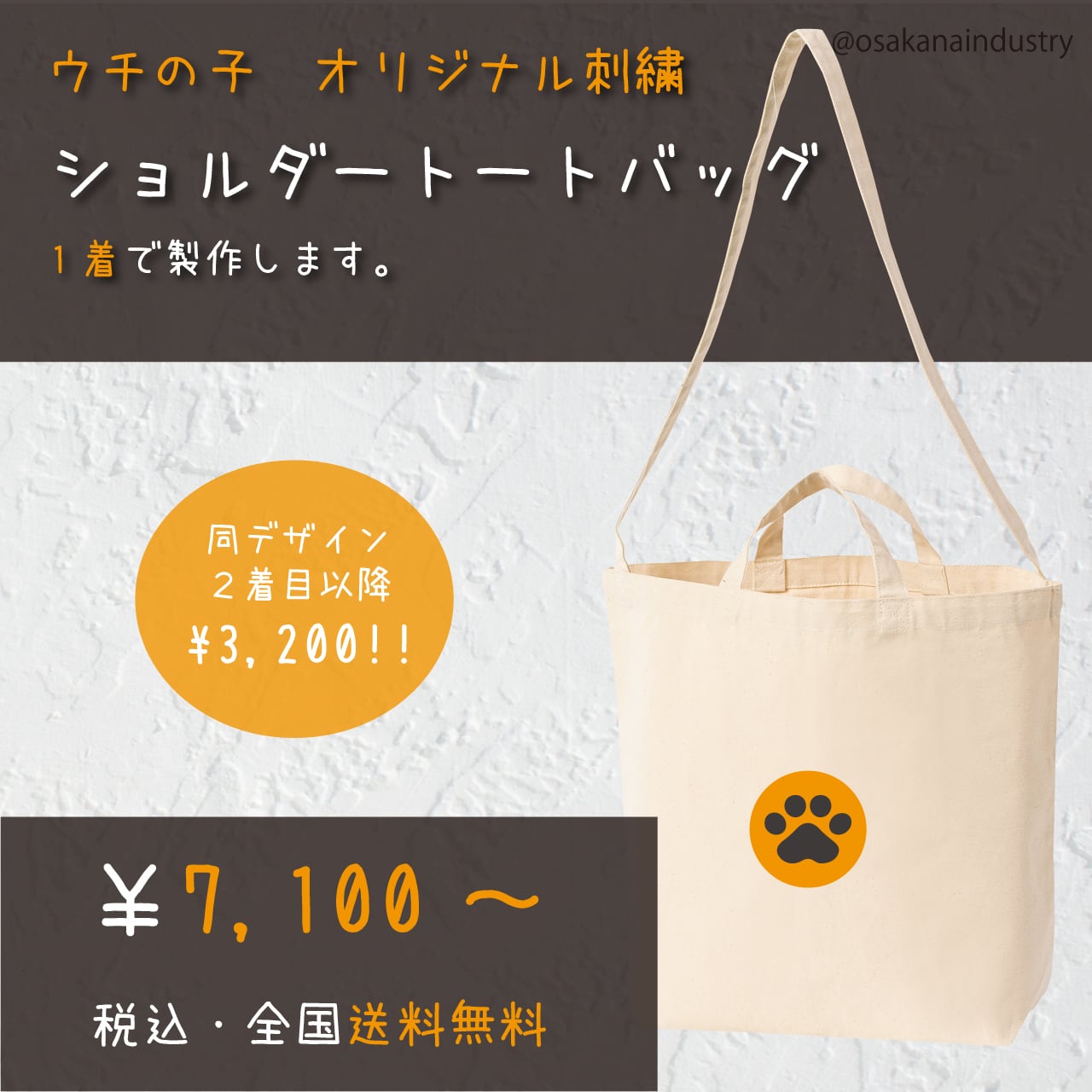 キャンバスショルダートートバックにお好きなデザインを刺繍します。